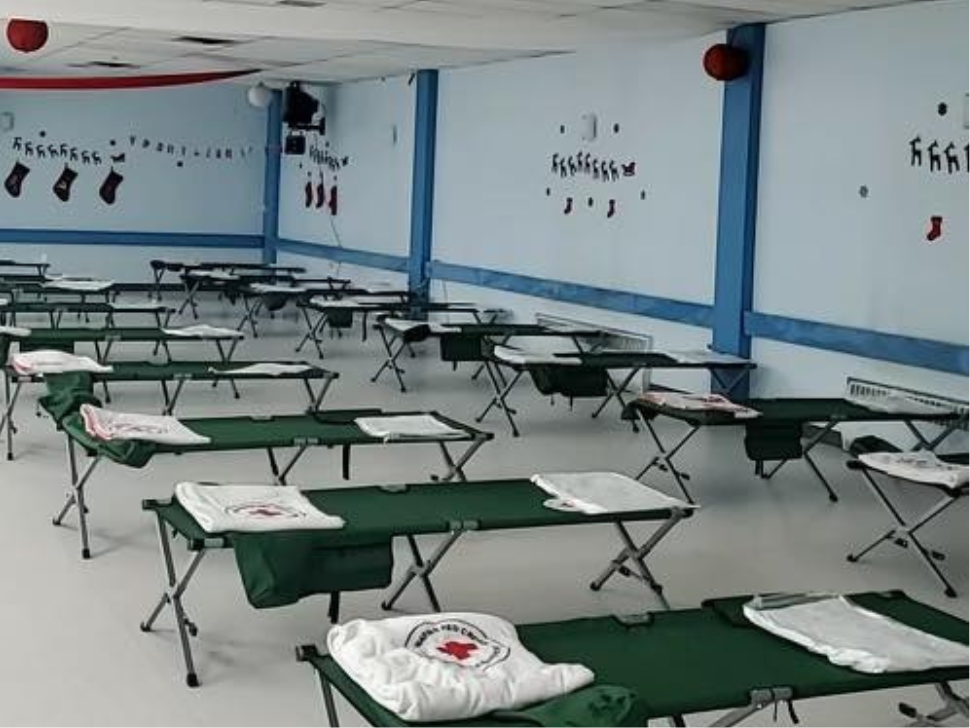 MMF Hall in Thompson, Manitoba, has been set up as a relief site for Pimicikamak Cree Nation members …