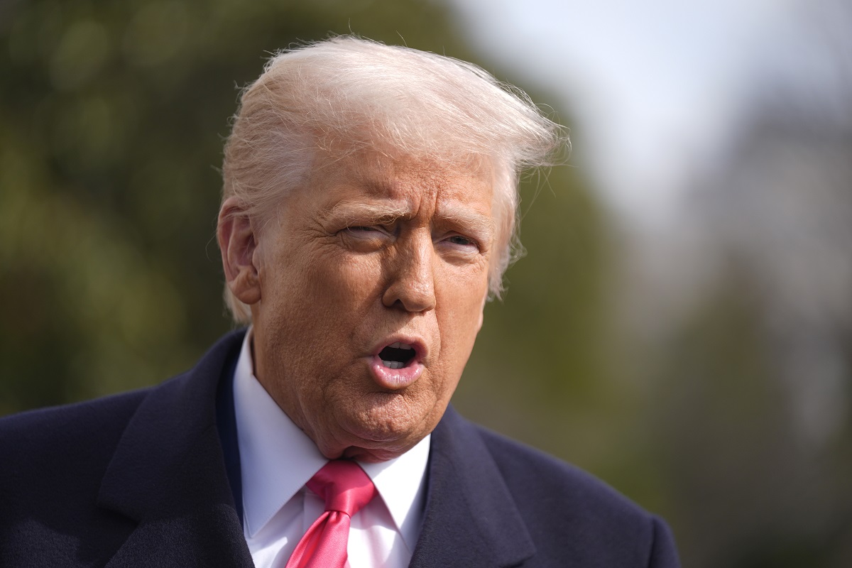 President Donald Trump speaks to reporters before departing the White House in Washington, Saturday, Feb. 22, 2025. The …