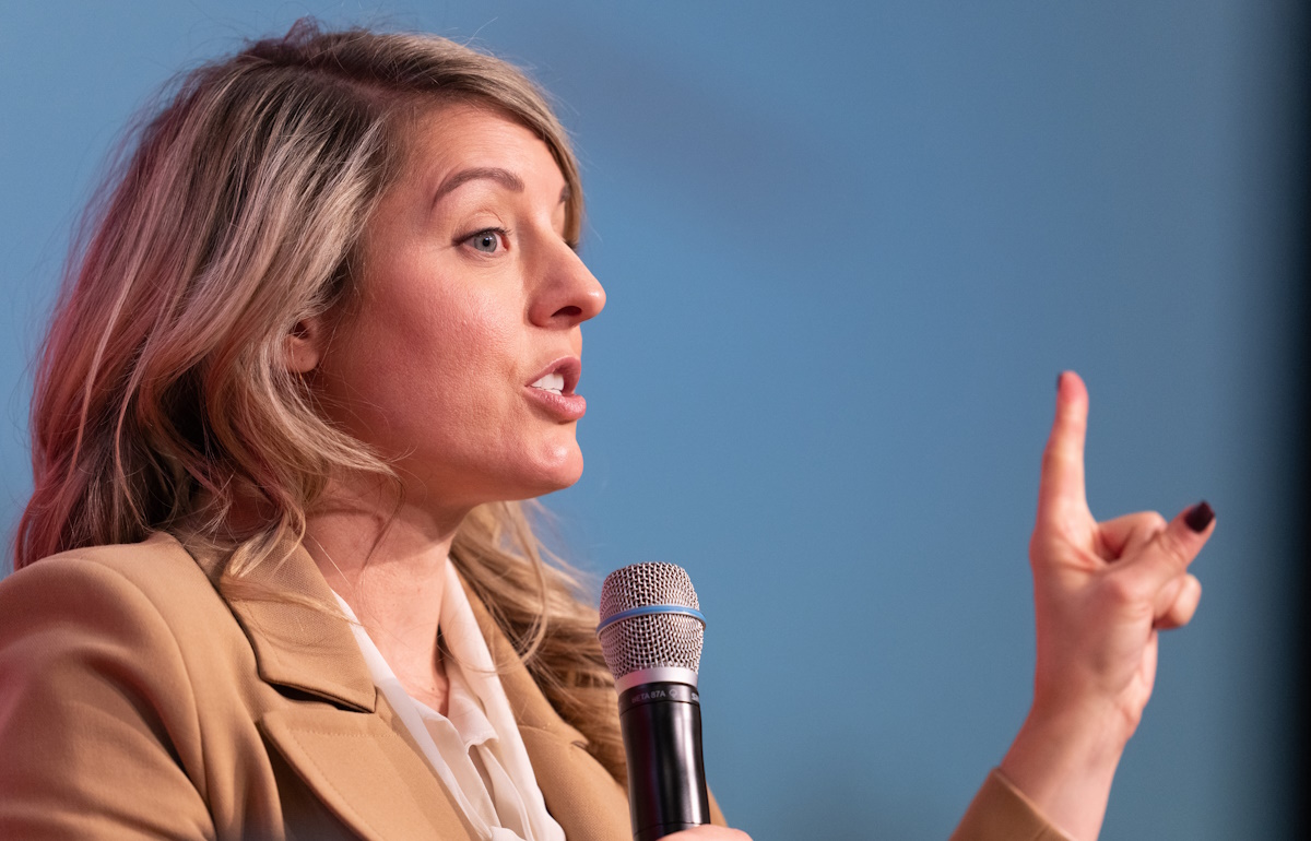 Foreign Affairs Minister Melanie Joly discusses Canada-United States relations during a Chamber of Commerce event in Montreal on …